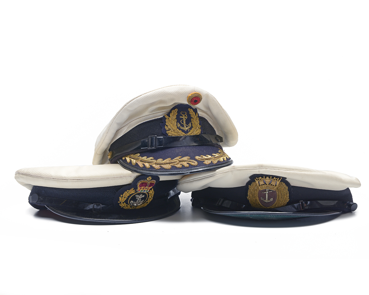THREE ASSORTED NAVAL PEAKED CAPS, (3)