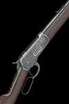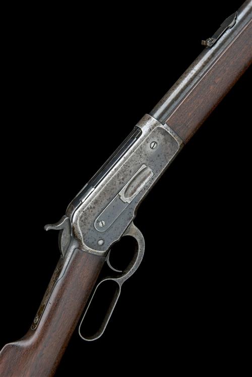 for 1902, with round 26in. barrel, dove-tailed fore-sight, special rear-sight with one standing and two folding notches, the top of barrel signed 'MANUFACTURED BY THE WINCHESTER-REPEATING-ARMS CO, NEW HAVEN CONN. U.S.A.', iron receiver with traces of blued finish, straight-hand butt-stock with crescent iron heel-plate, walnut fore-end, iron nose-cap, half-length magazine tube, retaining traces of original finish
