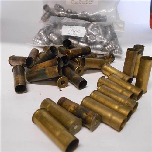 THIRTY .577 CASES AND ONE HUNDRED AND TWENTY BULLETS, comprising of 18 kynoch cases, 12 other brands, some primed and approximately 120 cast minie bullets for snider rifle, 520 grain lead.