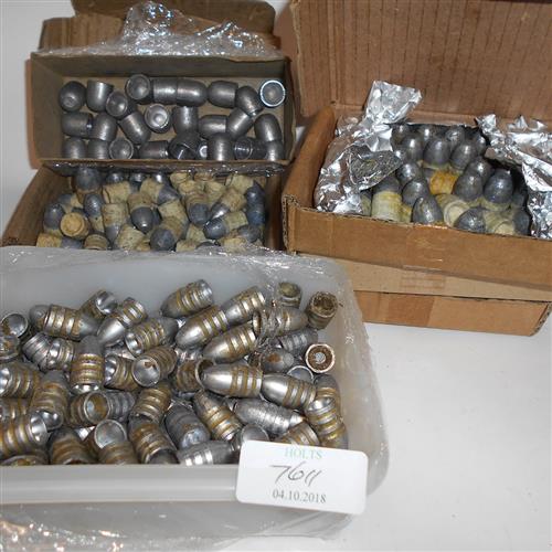 A MIX OF LARGE BORE SNIDER AND MUZZLE LOADER BULLETS, comprising of twenty eight hollow base .693 lead, fifty .58 mini l/p patched and lubed, fifty .575 patched and lubed, one hundred .577 mini patched and lubed , fifty .577 minie lubed, all quantities approximate.