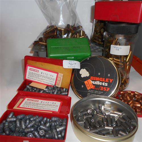 APPROXIMATELY 250 .357/.38SPL CASES, BULLETS, RELOADING TRAYS,