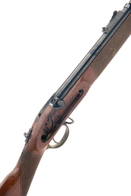 A REPRODUCTION .451 PERCUSSION RIFLE SIGNED PARKER-HALE, MODEL 'ENFIELD VOLUNTEER', serial no. 1002 with 33in. barrel, provision for peep-sight at wrist (all sights absent), missing lock, nipple, top and side-nails, chequered walnut three-quarter stock with two iron barrel-bands and brass furniture, missing ramrod