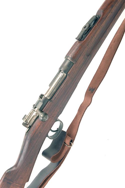 CARL GUSTAF 6.5X 55 SMOOTHBORE BOLT-MAGAZINE SERVICE RIFLE, serial no. 4744022, 29 1/4in. nitro barrel, threaded for sound moderator, block-mounted block fore-sight, tangent rear-sight, the receiver ring marked 'CARL GUSTAF GEVARSFAKTORI. 1919', manual bolt safety, detachable floorplate, 135/8in. straight stock, steel butt-plate, leather sling, including cleaning rod