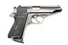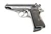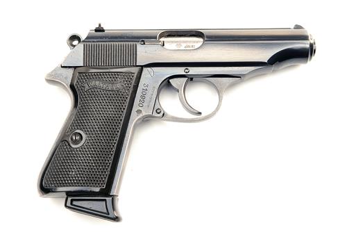 A 7.65mm SEMI-AUTOMATIC PISTOL SIGNED WALTHER, MODEL 'PP', serial no. 310920, with brushed bright 3 3/4in. barrel, blued sighted slide, blued frame and chequered black plastic grips