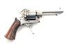 Belgian circa 1875, with octagonal 3 1/4in. barrel, open iron frame, plain cylinder, flared walnut grips and plunge ejector, stripped of finish