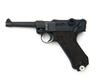 dated for 1942, with tapering 4in. barrel, 'byf' maker marked toggle-action, re-finished receiver and frame, provision for stock-board, chequered walnut grips, all matching numbers except un-numbered alloy based magazine