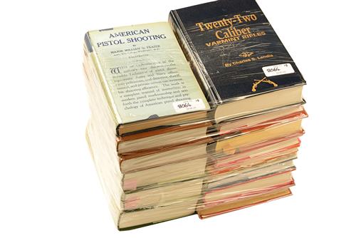 A COLLECTION OF 15 SHOOTING RELATED BOOKS, comprising on 'THE ZAMBESI JOURNAL OF JAMES STEWART 1862-1863' by J.P.R. Wallis, 'THE BIG-GAME RIFLE ILLUSTRATED' by Jack O' Connor, 'THE LUGER STORY' by John Walter, 'REMINGTON HANDGUNS' by Charles Lee Karr JR. & Caroll Robins Karr, 'THE PEACE-MAKER AND ITS RIVALS - AN ACCOUNT OF THE SINGLE ACTION COLT' by John E. Parsons, 'RESTRICTING HANDGUNS - THE LIBERAL SKEPTICS SPEAK OUT', a limited edition of 'THE BOOK OF THE SPRINGFIELD' by Edward C. Crossman, 'TWENTY-TWO CALIBRE VARMINT RIFLES' by Charles S. Landis, three volumes of 'THE MODERN SPORTMAN'S GUN AND RIFLE', 'DIARY OF COLONEL PETER HAWKER 1802-1853' volume 1 & 2, 'A STUDY OF ARMED CRIME AND FIREARMS CONTROL IN ENGLAND AND WALES - FIREARMS CONTROL' by Colin Greenwood, 'AMERICAN PISTOL SHOOTING' by Maj. William D. Fraser