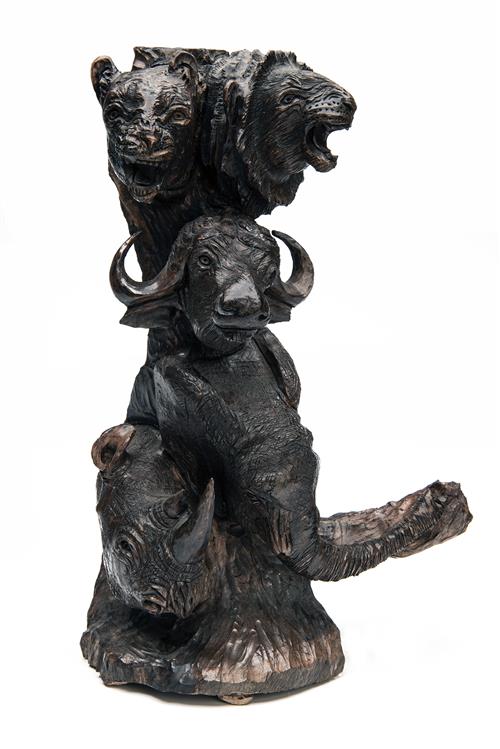 A SOUTHERN AFRICAN RHODESIAN TEAK BIG FIVE ANIMAL SCULPTURE,