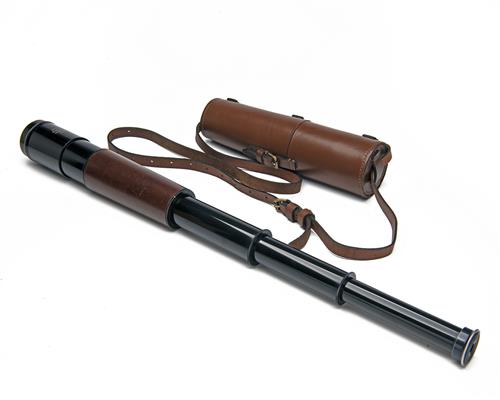 A LEATHER-BOUND THREE-DRAW 25X TELESCOPE,