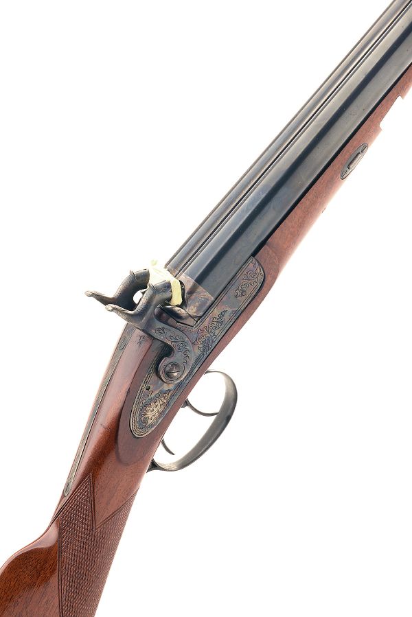 A REPRODUCTION 12-BORE DOUBLE-BARRELLED SPORTING-GUN SIGNED NAVY ARMS, MODEL DELUXE, serial no. N4989,