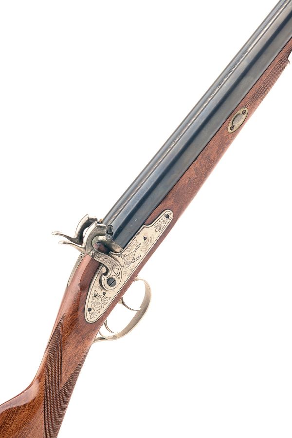 A REPRODUCTION 12-BORE DOUBLE-BARRELLED SPORTING-GUN SIGNED DIKAR, MODEL 'SHOTGUN', serial no. 88391070, with blued 28 1/2in. barrels, engraved brushed bright bar-action locks and chequered walnut half-stock, complete with wood ramrod