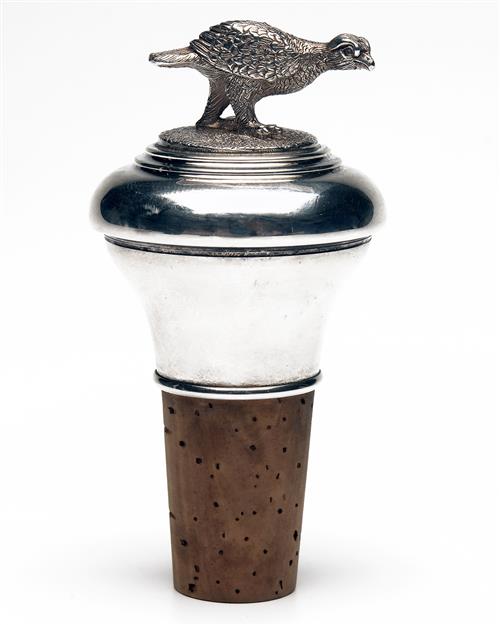 A .925 SILVER BOTTLE STOP IN THE FORM OF A GROUSE,