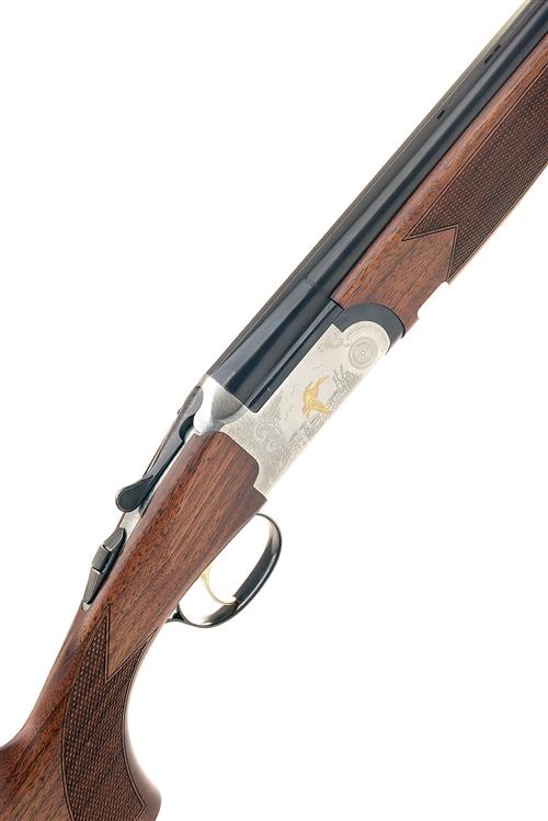 LINCOLN 20-BORE (3IN.) 'PREMIER' SINGLE-TRIGGER OVER AND UNDER EJECTOR, serial no. 228962, 28in. nitro barrels with 6mm ventilated matt top-rib, 3in. chambers, multichokes (with spares), hold-open toplever, automatic safety with integral barrel selector switch, gold-washed trigger, partial acanthus scroll engraving surrounding gold-highlighted vignettes of pheasant and fowl in flight, 14 1/4in. pistolgrip stock including buttplate, weight 6lb. 3oz., in its makers universal case
