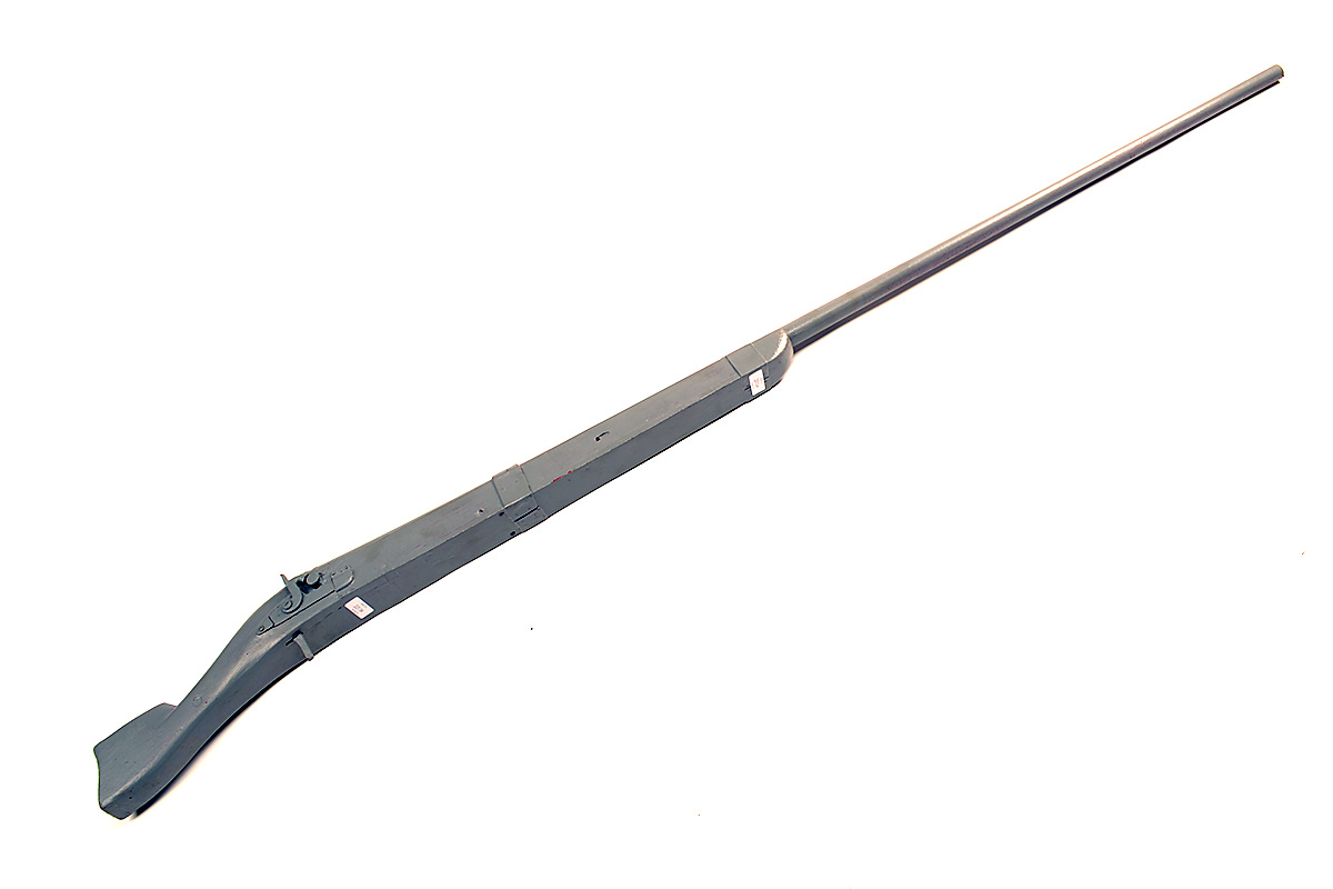 A 1INCH (APPROX) PERCUSSION PUNT-GUN SIGNED JEFFERIES, MALDON, no visible serial number, with grey painted round 68in. tapering barrel signed by the maker, bead fore-sight, carved bands at the breech, re-used plain sporting gun lock with drum and nipple, grey painted half-stock with tiller butt and squared fore-end, exposed trigger and two broad iron barrel-bands