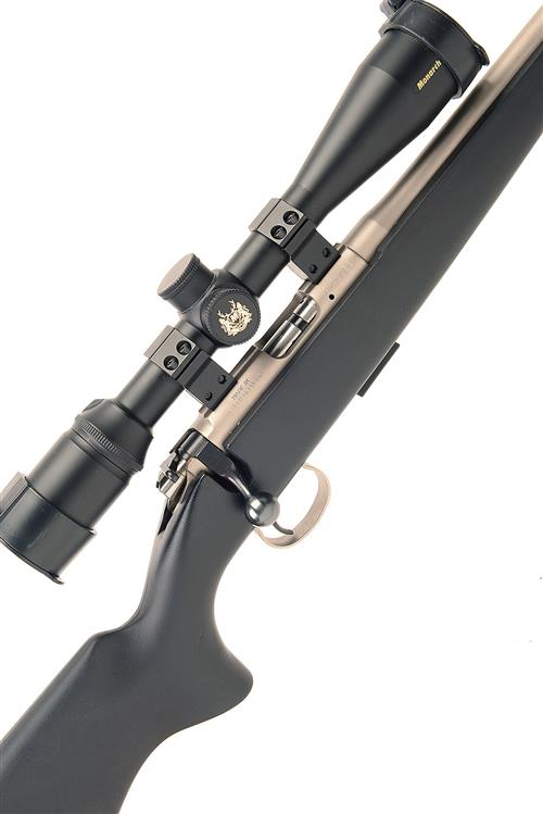 CZ .22 L.R. 'MODEL 452- 2E ZKM' BOLT-MAGAZINE SPORTING RIFLE, serial no. B196053, 17in. stainless unsighted nitro barrel, threaded for sound moderator, fitted with a Nikon Monarch 4-16x42 telescopic sight, manual safety, detachable magazine, folding bipod, stainless sound moderator, 14in. pistolgrip stock (including recoil pad), sling eyes, together with a canvas gunslip