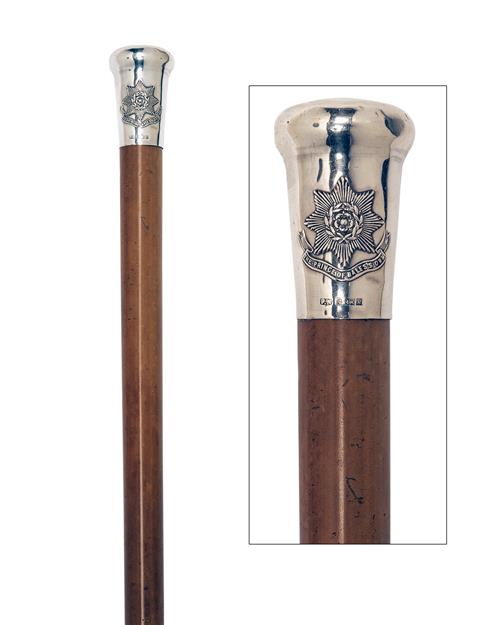 A SILVER-TOPPED WALKING CANE TO THE PRINCE OF WALESS OWN REGT.,