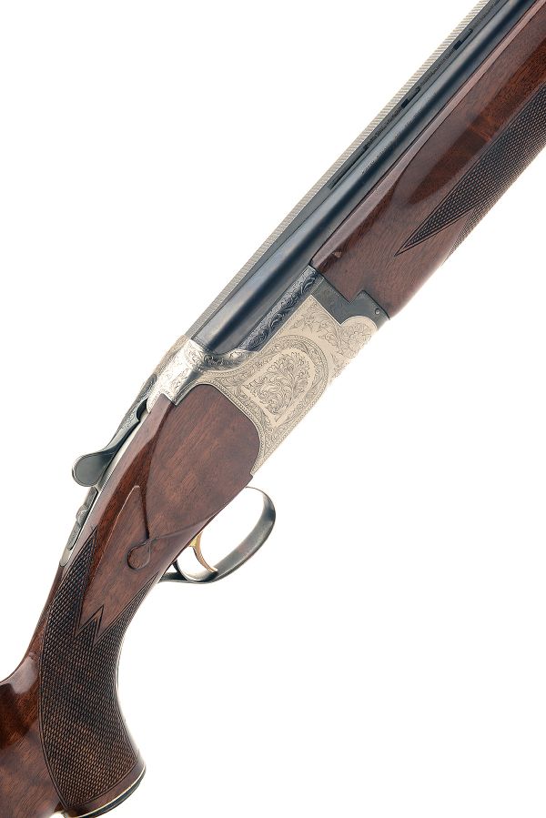 B.C. MIROKU 12-BORE SINGLE-TRIGGER OVER AND UNDER EJECTOR, serial no. 342972, 30in. nitro barrels with 10mm ventilated matt top-rib, 2 3/4in. chambers bored approx. 1/4 and 1/2 choke, hold-open toplever, manual safety with integral barrel selector switch, gold-washed single trigger, beaded border and foliate scroll engraving, bright finish, 14 1/4in. pistolgrip stock with raised comb, including 3/4in. rubber recoil pad, weight 7lb. 15oz.