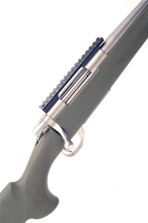 HOWA .243 WIN. 'MODEL 1500' BOLT-MAGAZINE SPORTING RIFLE, serial no. B289360, 22in. brushed bright unsighted nitro barrel, threaded for sound moderator, dovetail scope rail, brushed bright action, manual safety, hinged floorplate, 14 1/8in. green rubberised pistolgrip stock (including recoil pad), sling eyes, together with Sonic sound moderator serial no. 013565