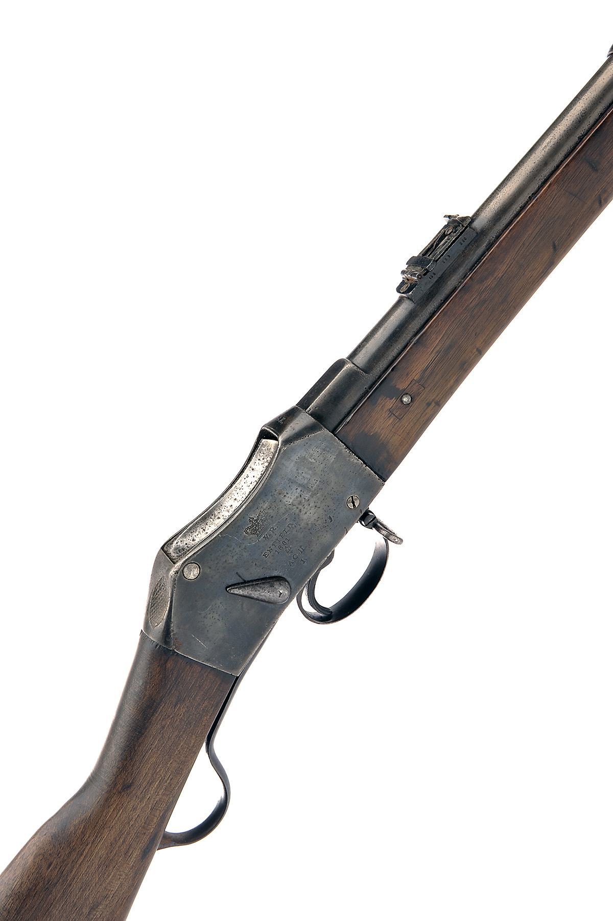 A .577-.450 (M/H) SINGLE-SHOT CARBINE SIGNED ENFIELD, MODEL 'MARTINI-HENRY MKII ARTILLERY CARBINE', no visible serial number, with 21 1/2in. sighted barrel, slab sided receiver dated 1881, walnut butt-stock and fore-end, two barrel-bands, some shallow pitting and refinishing, farsi marks to trigger-guard bow