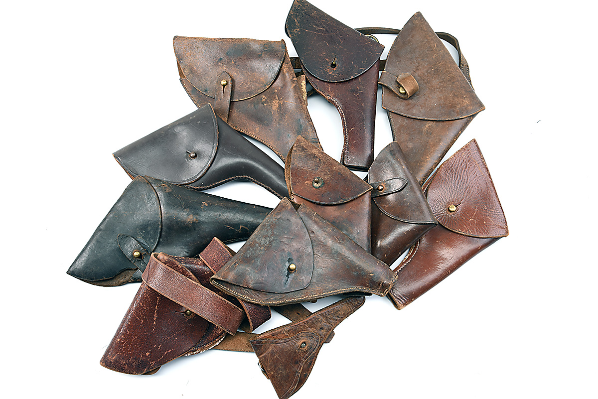 A BOX OF 12 LEATHER VINTAGE REVOLVER-HOLSTERS