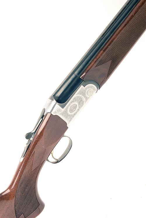 FAUSTI STEFANO 12-BORE (3IN.) SINGLE-TRIGGER OVER AND UNDER NON-EJECTOR, serial no. B32352, 28in. nitro barrels (loose) with ventilated mid-rib and 7mm ventilated matt top-rib, 3in. chambers, multichokes (no spares), hold-open toplever, manual safety, floral scroll engraving, bright finish, 14 1/4in. pistolgrip stock including 5/8in. ventilated rubber recoil pad