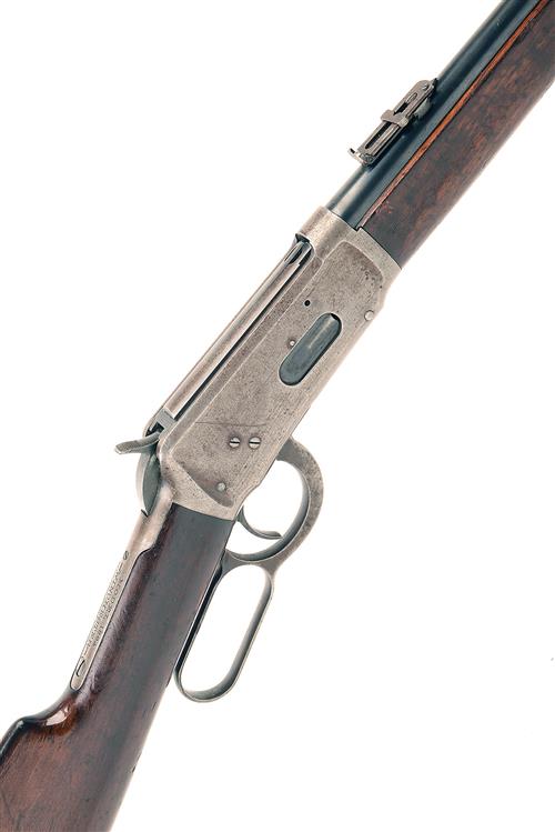 WINCHESTER .30 W.C.F. 'MODEL 1894' LEVER-ACTION REPEATING CARBINE, serial no. 697374, 20in. nitro barrel, blade fore-sight, V-notch rear-sight, barrel signed 'WINCHESTER' tang marked 'MODEL 1894 WINCHESTER TRADE MARK REG. IN THE U.S. PAT. OFF.' full-length tubular magazine, 13in. straight stock, steel buttplate