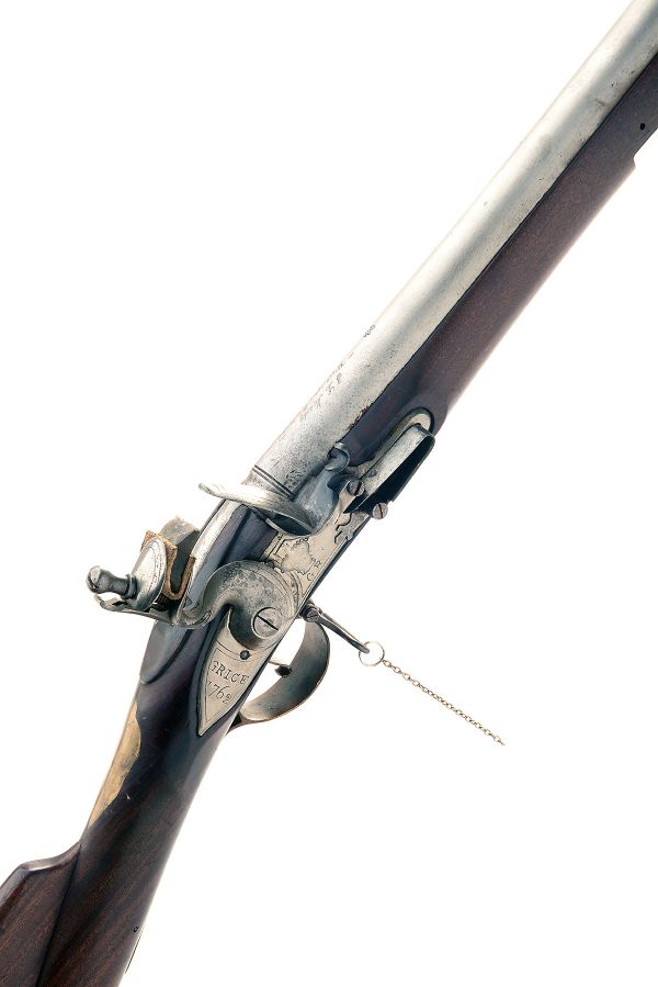 A REPRODUCTION 12-BORE (.750) FLINTLOCK MUSKET SIGNED J.L. MUNDY, WASHINGTON, ENGLAND, MODEL 'BROWN BESS', no visible serial number, with brushed bright 46in. barrel signed at breech, military style lock marked 'GRICE 1762' at tail, walnut handrail full-stock, brass furniture and iron ramrod
