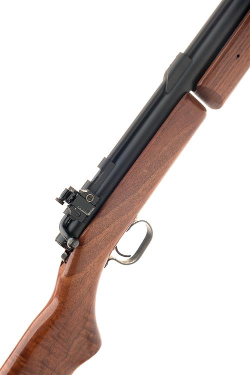 A .177 MULTI-PUMP PNEUMATIC AIR-RIFLE SIGNED BENJAMIN, serial no. 210354 with 19in. blackened brass barrel and pump-housing, bolt action receiver and walnut butt-stock and fore-end