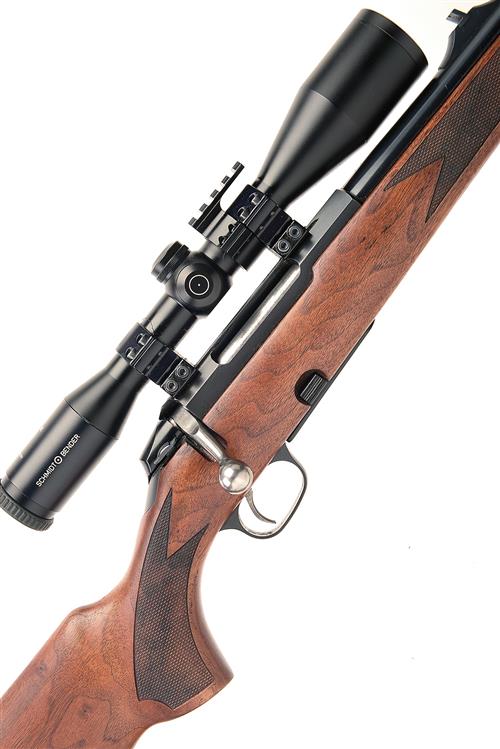 TIKKA .222 REM 'MODEL M890' BOLT-MAGAZINE SPORTING RIFLE, serial no. 859171, 22 3/8in. nitro barrel, threaded for sound moderator, fore-sight missing, rear leaf sight, the receiver mounted with a Schmidt & Bender 4x42 Klassik telescopic sight, manual safety, detachable magazine 14 5/8in. well-figured pistolgrip stock (including recoil pad), canvas sling