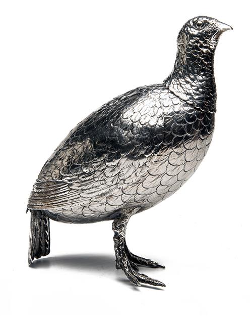 BERTHOLD MUELLER A VICTORIAN STERLING SILVER TOBACCO JAR IN THE FORM OF A PARTRIDGE,