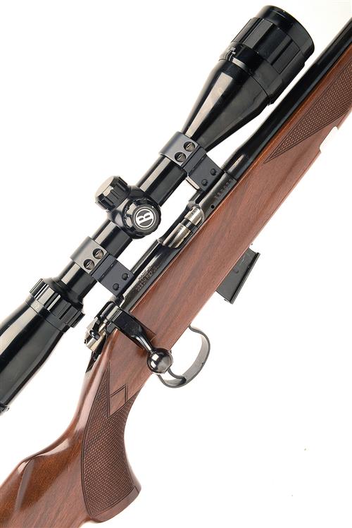 BRNO .17 HMR 'MODEL 452-2E ZKM AMERICAN' BOLT-MAGAZINE SPORTING RIFLE, serial no. 00307, 22 1/4in. unsighted nitro barrel, the receiver mounted with a Bushnell 4-14x telescopic sight, manual safety, detachable magazine, 13 3/8in. pistolgrip stock, canvas sling,