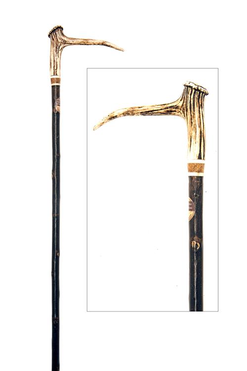 A HAND-MADE RED DEER ANTLER 'CORONET' STICK,