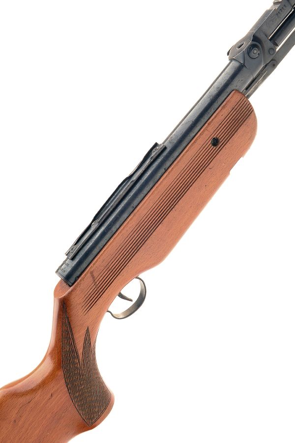 A .22 UNDER-LEVER AIR-RIFLE SIGNED RELUM, MODEL 'TORNADO', serial no. 21711, with 18 3/4in. barrel, later applied rail to the air-chamber (deformed) and beech half-stock