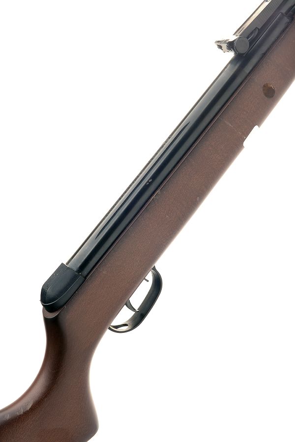 A .22 BREAK-BARREL AIR-RIFLE SIGNED BSA, MODEL 'METEOR', serial no. WE22492, with blued and sighted 18 1/2in. barrel, blued air-chamber and beech half-stock with safety catch inside trigger guard, appearing little used