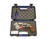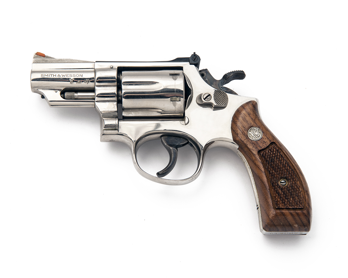SMITH & WESSON .357 (MAG) SIX-SHOT REVOLVER, MODEL '19-3', serial no. K792059, with nickel-plated 2 3/8in. barrel, ramp fore-sight, adjustable rear-sight, plated solid frame and swing-out fluted cylinder, colour-hardened trigger and hammer, factory chequered wood grips, in its makers universal case