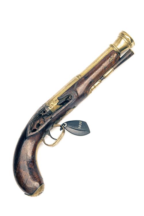 A SCARCE 14-BORE FLINTLOCK BLUNDERBUSS PISTOL FOR RENOVATION SIGNED 'MULEY, DUBLIN' no visible serial number,