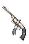 A 54-BORE PERCUSSION TRANSITIONAL REVOLVER WITH FOLDING BAYONET, UNSIGNED, no visible serial number,