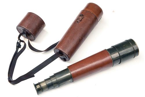J.H. STEWARD A LEATHER-BOUND THE VICTORY THREE-DRAW 25X TELESCOPE,