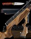 of 150 produced to commemorate the 150th year since the Birmingham Small Arms Co. Ltd was incorporated in 2011, with blued 22 3/4in. barrel including detachable sound moderator, black anodised receiver with provision for a detachable magazine (included) but currently fitted with a single load device, polished bolt handle, the left side of receiver etched with the BSA trademark, 'LIMITED EDITION 150 YEARS' and a Union Jack flag, the right hand side similar but additionally with 'MADE IN BIRMINGHAM, ENGLAND' in script, highly figured chequered walnut french-polished anatomical right-hand half-stock fitted with an adjustable rubber heel-plate and detailed with rosewood grip-cap and schnabel fore-end tip, both with white-line spacers, detachable air-reservoir and fitted with 'Q.D.' swivels, appearing unused and complete with its aluminium flight-case, special anniversary leather sling, telescopic sight and mounts, all documents and certificate of limited edition and also including the supplied special anniversary BSA sheath knife by Patrick Knives in its makers carton, marked with the matching limited edition number, all also appearing unused