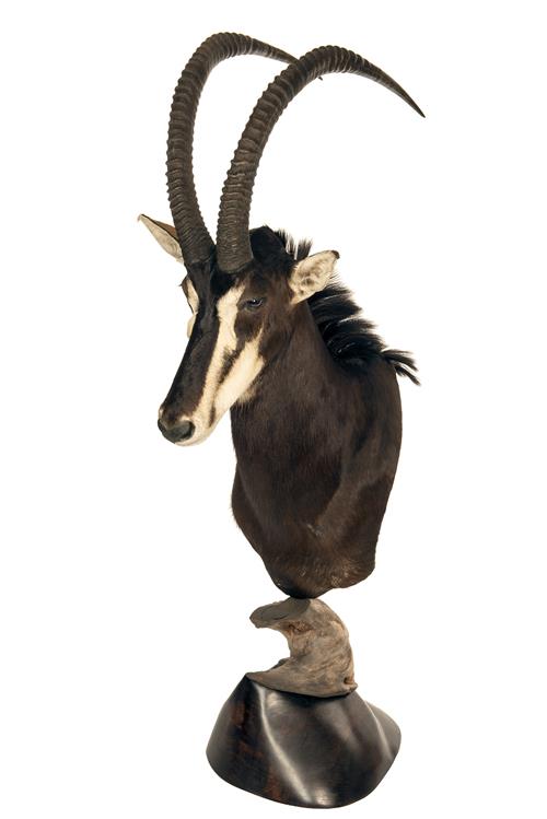 A FREE STANDING CAPE MOUNT OF A SABLE ANTELOPE (hippotragus niger),
