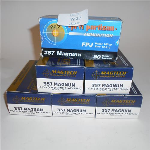 300 ROUNDS .357 MAGNUM AMMUNITION comprising of 250 Magtech 158grn flat FMC and 50 rounds of Privi Partisan 158 grn FPJ