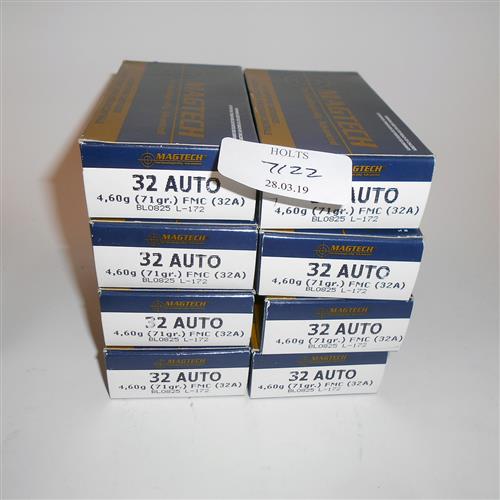 400 ROUNDS OF .32 AUTO AMMUNITION BY MAGTECH comprising of 8 boxes of 50 71grn FMC in retail cartons of 50