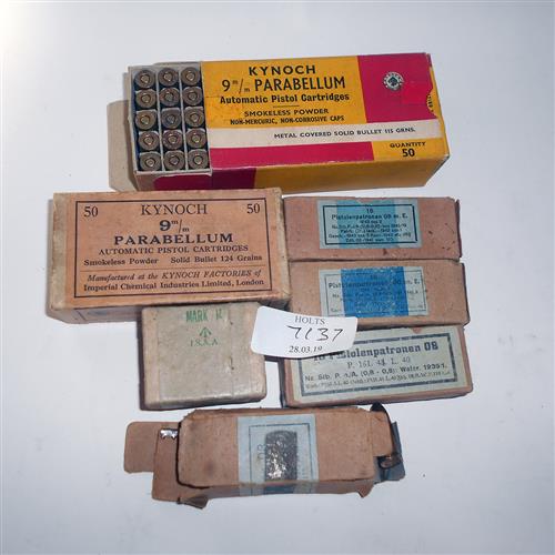 APPROXIMATELY 170, 9MM PARABELLUM AMMUNITION, comprising of 78 WW11 issue and dated, 44 Kynoch pre WW11, 50 Kynoch undated post WW11.