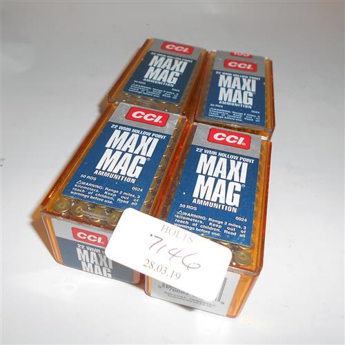 200 ROUNDS OF .22 WMR HP MAXI MAG AMMUNITION BY CCI