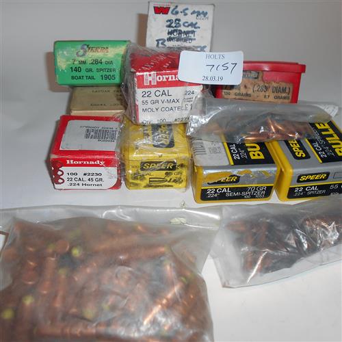 250 BULLETS VARIOUS .22 / .224/ 5.7mm, 6.5mm, 7mm, comprising of: