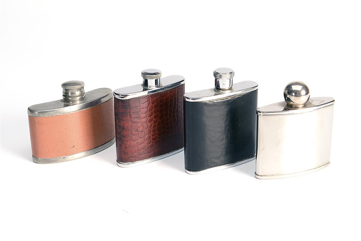 A COLLECTION OF FOUR 2oz DRINKING FLASKS