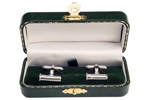A PAIR OF STERLING SILVER CUFFLINKS IN THE FORM OF 12-BORE CARTRIDGES,