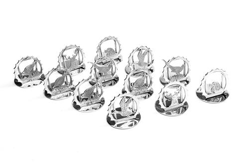 six pairs of game, stag head, setter, grouse, woodcock, duck, pheasant, sterling silver hall marks, each measuring approx. 1 1/4in. diameter, 1 1/4in. high