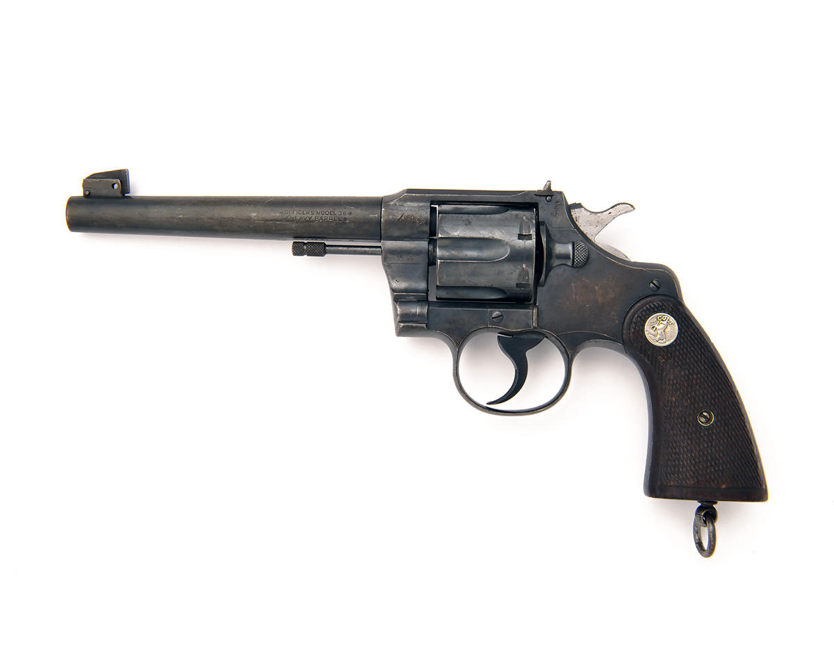 COLT .38 (SPL) MODEL 'OFFICER'S TARGET' SIX-SHOT DOUBLE-ACTION REVOLVER, serial no. . 646228, wartime production with heavy tapering 6in. barrel, pinned fore-sight blade, drift adjustable rear-sight, blued frame with swing-out fluted cylinder, chequered walnut grips inlet with 'Colt' medallions, some original finish
