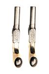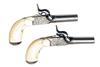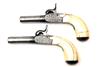 A PAIR OF 100-BORE PERCUSSION TURN-OFF MUFF-PISTOLS WITH IVORY BUTTS, UNSIGNED, no visible serial numbers,